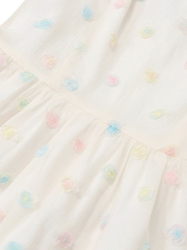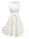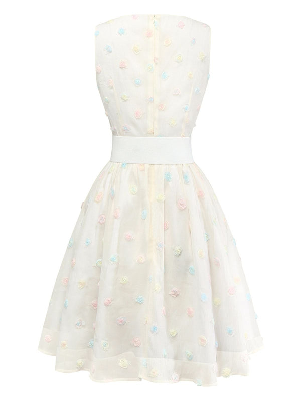 [Pre-Sale] White 1950s 3D Floral Dot Bow Belt Dress
