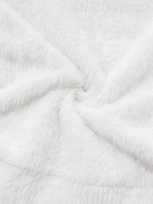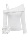 [Pre-Sale] White 1960s Off-Shoulder Camisole Plush Knit Sweater